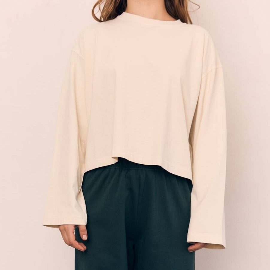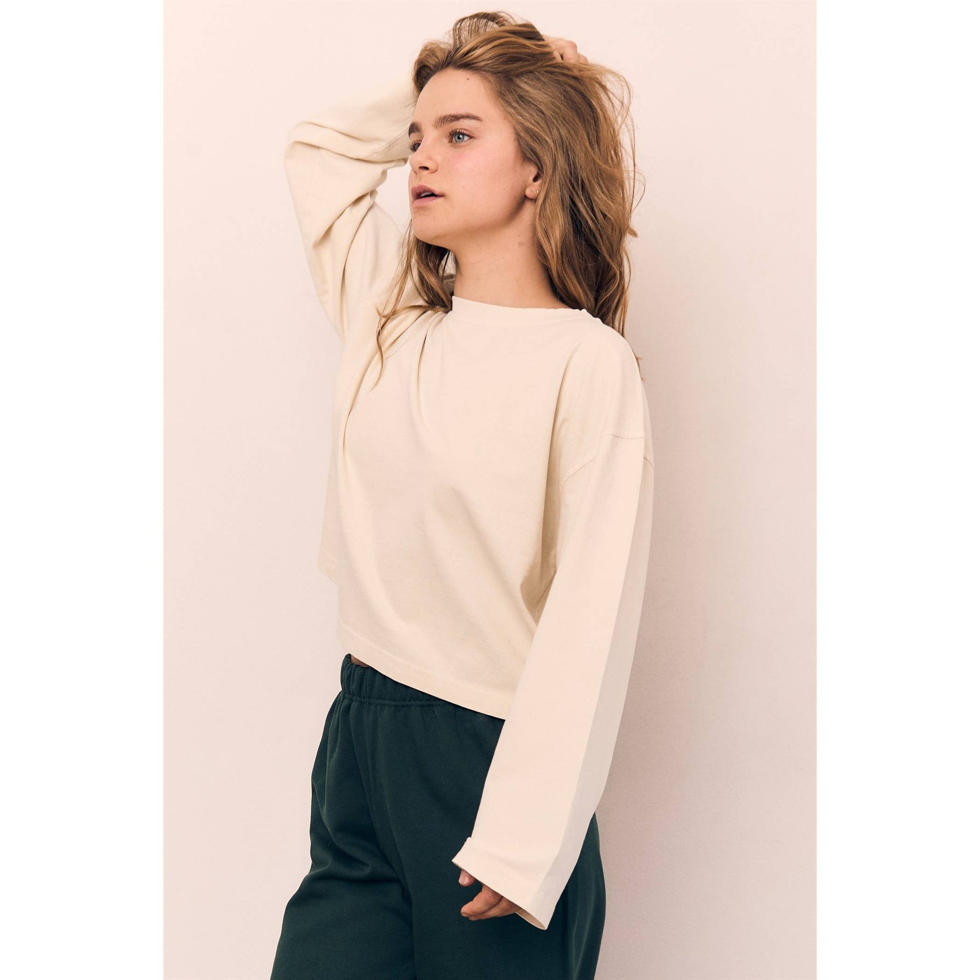 Mineral Washed Cotton Oversized Long Sleeve Blank Tee